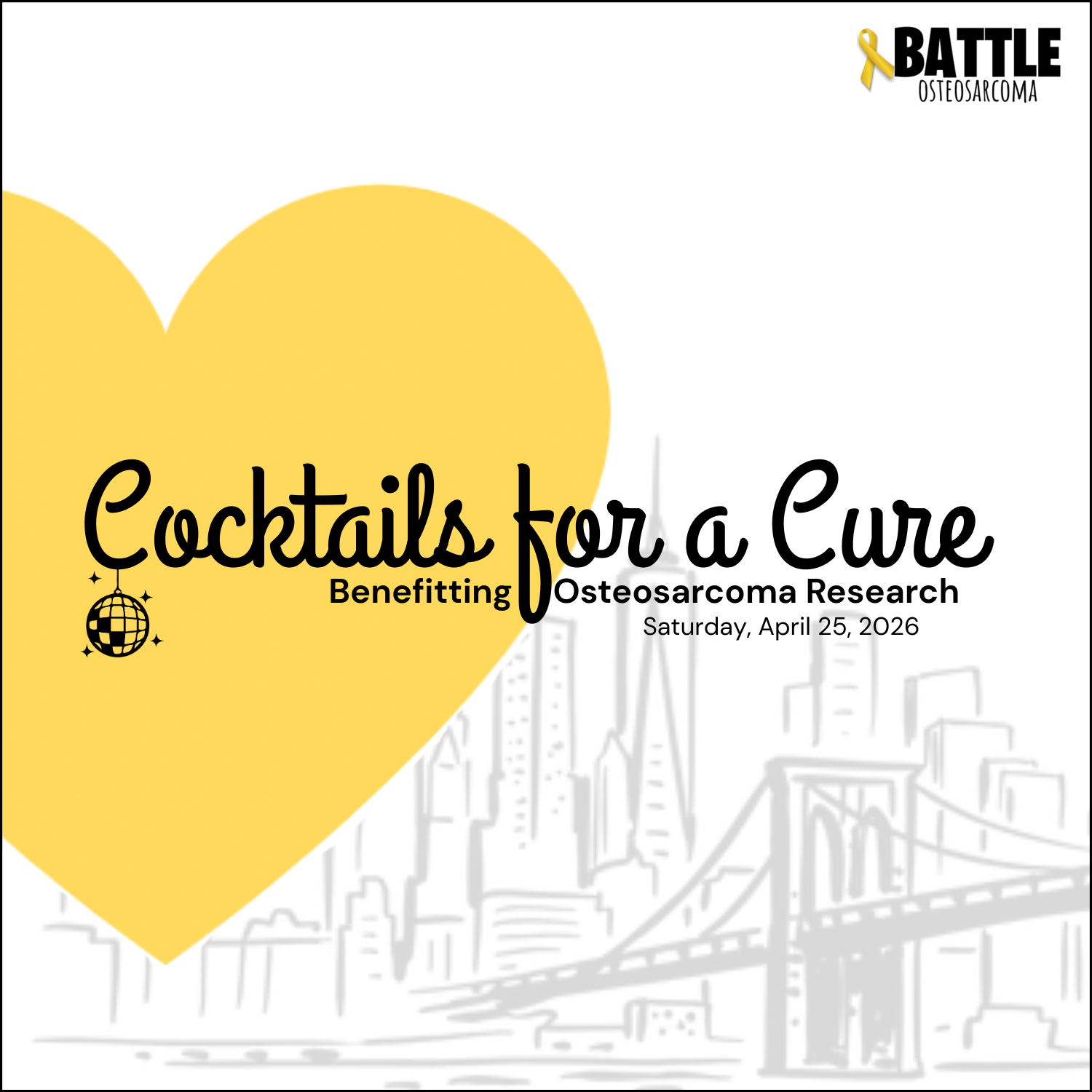 Cocktails for a Cure NYC supports research to improve treatment and outcomes for children with osteosarcoma, a form of bone cancer. The inaugural event was founded by Maggie Murdoff in honor of her sister Charlotte and two other kids in her hometown who lost their lives to osteosarcoma. Cocktails for a Cure NYC is a night to come together, celebrate, and provide support to families affected by osteosarcoma.